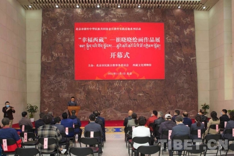 中國西藏網(wǎng)訊 11月1日,由中國藏學研究中心西藏文化博物館和北京市民族宗教事務委員會聯(lián)合主辦的“幸福西藏——崔曉曉繪畫作品展”在西藏文化博物館開幕。