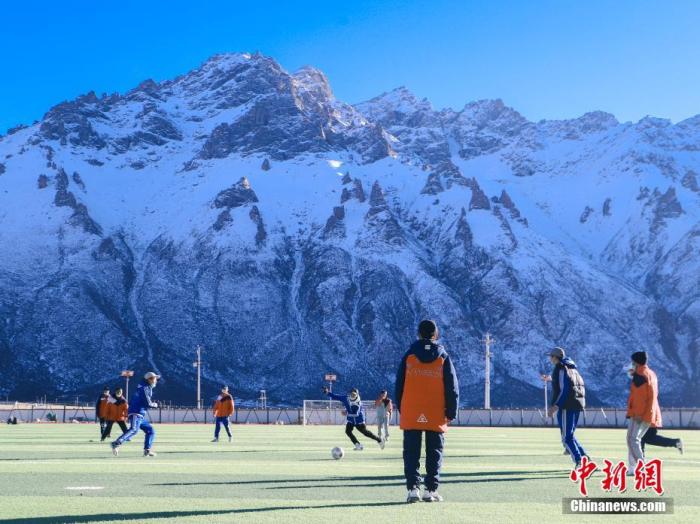圖為11月25日,西藏那曲市嘉黎縣中學(xué)學(xué)生們?cè)凇把┥较碌膲?mèng)幻足球場(chǎng)”上進(jìn)行足球訓(xùn)練。 中新社記者 貢嘎來(lái)松 攝