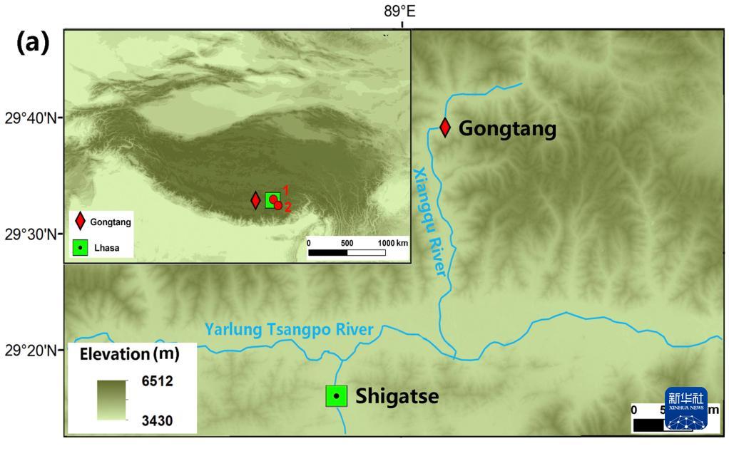 圖(a)為雅魯藏布江中游部分地區(qū)遺址背景資料圖,曲貢(1)、邦嘎(2)和共塘遺址位置(紅色菱形所示)。(資料圖片由第二次青藏科考隊(duì)“人類(lèi)活動(dòng)歷史及其影響”分隊(duì)提供)