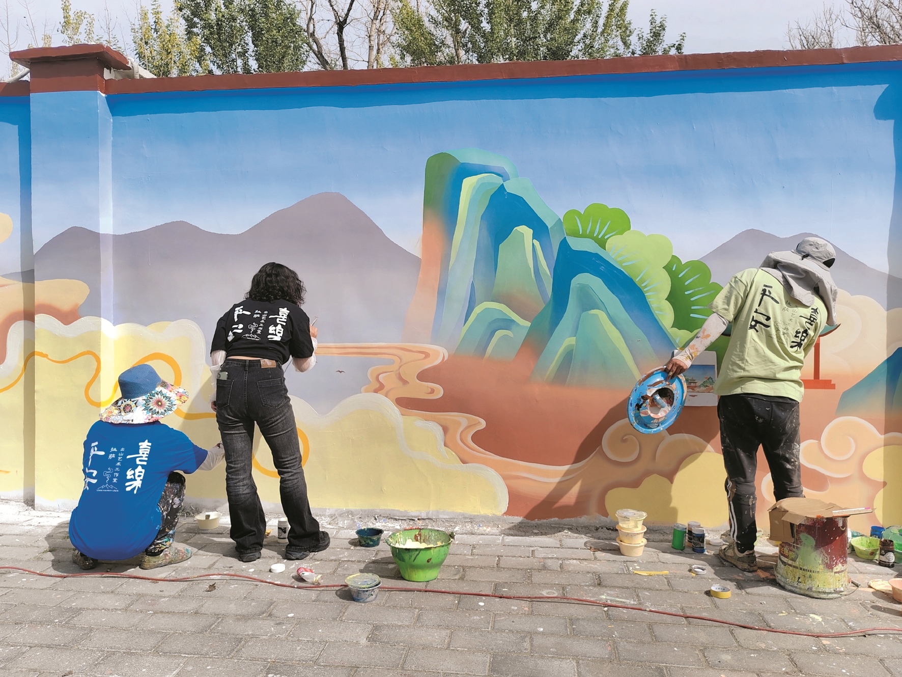 近期,在拉薩城區(qū)大街小巷,一幅幅形態(tài)鮮活、通俗易懂的彩繪被“搬”上了墻,讓原本單調(diào)的墻體靈動起來,變成了傳播文明的窗口、學習教育的陣地、美化家園的景觀。從文創(chuàng)園區(qū)《文成公主》實景劇場向北眺望,西藏大學河壩林校區(qū)與它隔河相望,一幅構思巧妙、主題鮮明、栩栩如生的文成公主進藏連環(huán)圖在出山文化藝術工作室主理人安念初和她團隊的手中,徐徐展開。她們手持畫筆和顏料,有條不紊地進行墻體作畫,時而用筆在墻體上勾勒輪廓,時而用噴槍在墻上涂刷,將原本簡單的墻體變得趣味盎然、充滿活力。這幅唯美生動、層次豐富、色彩飽滿的文化墻融入了拉薩元素,與周邊環(huán)境相融合,采用3D彩繪形式展示,用優(yōu)秀的傳統(tǒng)文化元素宣傳闡釋社會主義核心價值觀。