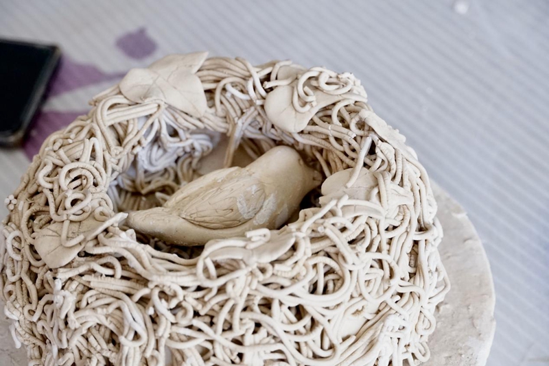 圖為特殊學(xué)校一位聾啞學(xué)生的陶藝作品《溫馨的鳥巢》。