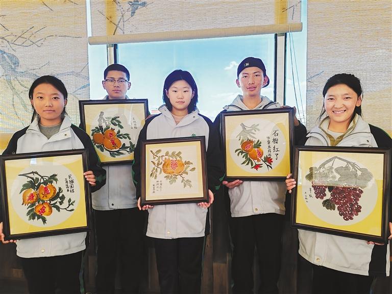 學員尼瑪次仁和格桑旦增通過寫意花鳥的創(chuàng)作,感受到了中國畫的魅力。他們的作品《石榴紅了,籽籽同心》在北實宏志班赴京游學中作為禮物,贈送給北京友好學校。