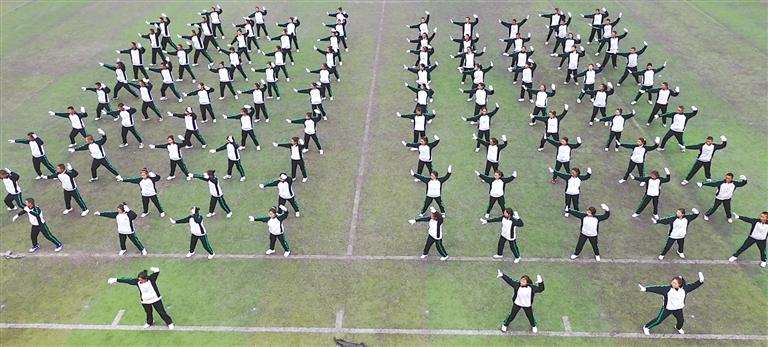拉薩北京實驗中學的學生不僅能盡情“舞”動,而且還能在體育組老師的指導(dǎo)下“武”動起來。桂小英老師在“武術(shù)基礎(chǔ)”校本課程以外還創(chuàng)編了武術(shù)操《英雄少年》。這套操是集武術(shù)和體操動作于一體的運動,包含太極拳、少年拳、南拳和健身氣功,姿勢舒展大方,動作剛勁有力。通過操練《英雄少年》、參加武術(shù)校本課,學生在增強身體素質(zhì)和意志品質(zhì)的同時,還傳承、弘揚了中華文化,且增強了團隊合作意識和自我保護的能力。