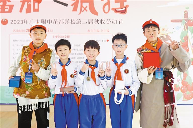 參加冬令營活動的少先隊員與廣大附中花都實(shí)驗(yàn)學(xué)校的新朋友互換禮物并合影。記者 謝筱純 王珊 攝