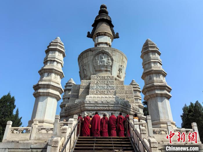 5月20日,西藏少年活佛參學團到北京西黃寺參訪。中新社記者 劉玥晴 攝
