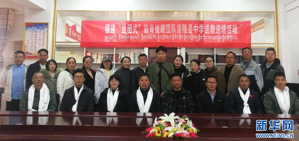 西藏昌都洛隆縣中學(xué)領(lǐng)導(dǎo)和加入閩昌名師工作室的老師,與福建“組團(tuán)式”教育援藏團(tuán)隊(duì)“送教送培”小分隊(duì)合影。5月10日攝