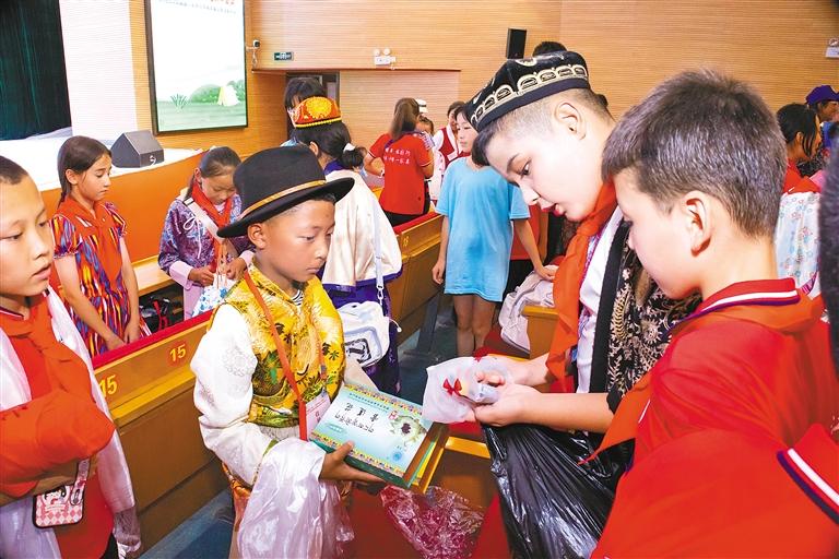 圖為鄂藏疆各族青少年交換禮物,互訴情誼。通訊員 李少康 記者 汪純