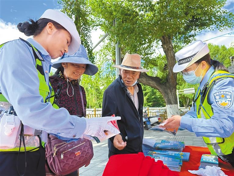 為增強(qiáng)市民群眾的道路交通安全意識,預(yù)防和減少道路交通事故發(fā)生,日前,拉薩市公安局交警支隊(duì)城西大隊(duì)在宗角祿康公園開展道路交通安全宣傳活動,將交通安全知識帶到群眾身邊。