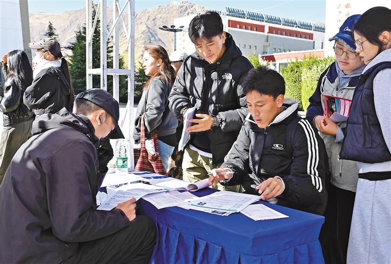 近日,由拉薩市人力資源和社會(huì)保障局主辦,西藏大學(xué)、西藏民族大學(xué)協(xié)辦的2025年全國(guó)城市聯(lián)合招聘高校畢業(yè)生春季專場(chǎng)活動(dòng)在西藏大學(xué)納金校區(qū)舉行。招聘會(huì)提供了文秘、出納、會(huì)計(jì)、醫(yī)輔、客服等1650個(gè)崗位,吸引了不少學(xué)生前來(lái)應(yīng)聘。
