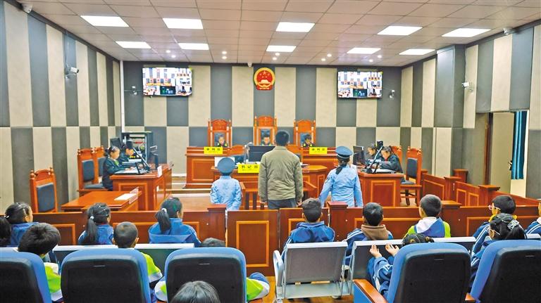 圖為結(jié)巴鄉(xiāng)小學(xué)的學(xué)生模擬法庭庭審現(xiàn)場(chǎng)。記者 武沛濤 攝