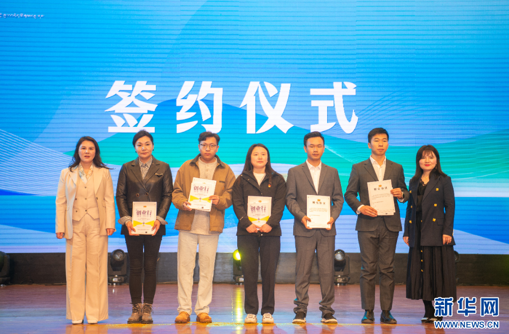4月27日,5名大學生代表簽署創(chuàng)業(yè)孵化協(xié)議。新華網(wǎng) 旦增努布 攝