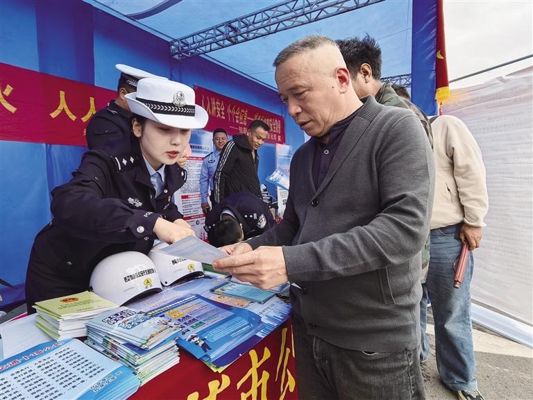 交警向市民講解交通安全知識(shí)。 文/圖 記者 次吉 婁夢(mèng)琳