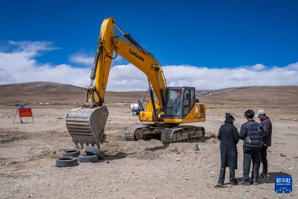 5月11日,在那曲市聶榮縣尼瑪鄉(xiāng),農(nóng)牧民選手在進行挖掘機操作技能的比賽。新華社記者 孫非 攝 ??