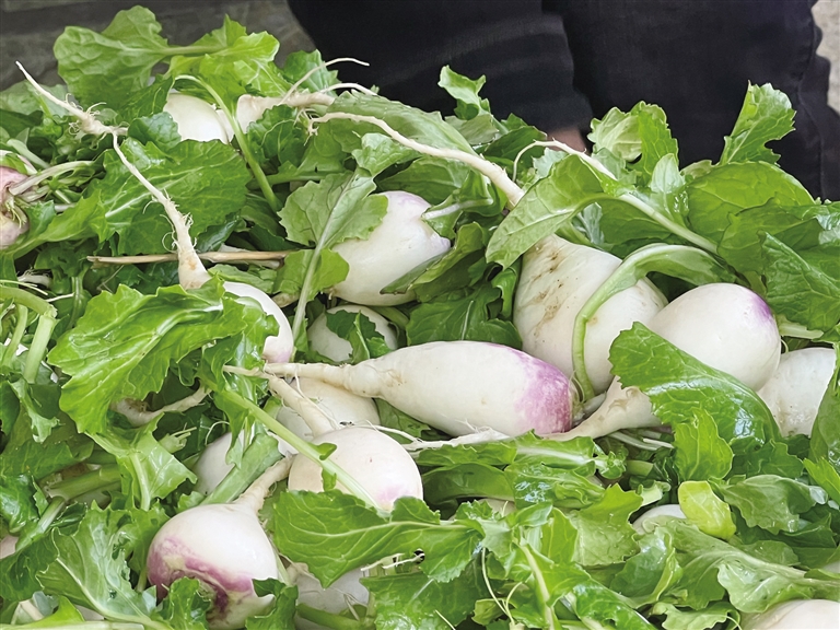 “這些‘妞瑪’都是昨天剛從地里挖的,20元一斤?!睌傊鞔稳噬2颊碇丝鹬械男迈r“妞瑪”,瞬間吸引了不少顧客。次仁桑布家住曲水縣其奴村,據(jù)他介紹,村里家家戶戶每年都會(huì)種植幾畝“妞瑪”,品相好的拿到拉薩銷售,其余部分則作為家畜的營(yíng)養(yǎng)品。5月25日一大早,次仁桑布便帶著自家的“妞瑪”來(lái)拉薩銷售,“這些‘妞瑪’全是昨晚洗好、晾好的,一到市場(chǎng)上便成了‘香餑餑’,一上午就能賣掉四五十斤?!?/p>