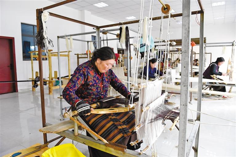 氆氌是藏族群眾用來(lái)制作衣物的毛織品,其工藝迄今已有上千年歷史。近年來(lái),昌都市八宿縣將傳承傳統(tǒng)工藝與推動(dòng)鄉(xiāng)村振興相結(jié)合,通過(guò)招商引資成立氆氌加工廠,招收當(dāng)?shù)貗D女群眾在家門(mén)口就業(yè),拓寬農(nóng)牧民增收渠道。