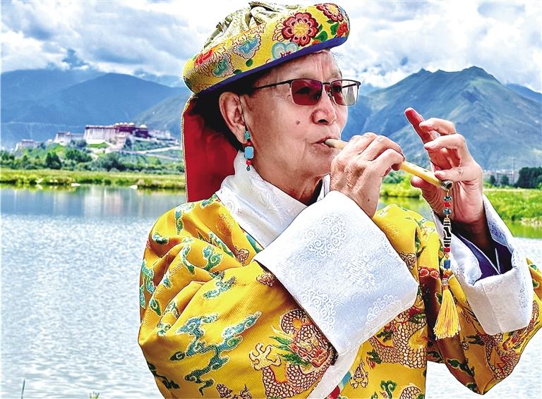 交談中,時(shí)間仿佛回到了1963年。當(dāng)時(shí)年僅13歲的次旦由國(guó)家民委招生,被保送到北京的中央民族學(xué)院,開(kāi)始系統(tǒng)學(xué)習(xí)民族器樂(lè)專業(yè),專攻竹笛演奏,從此走上了藝術(shù)之路?!拔覀円黄鹑ケ本W(xué)習(xí)的共有24人,當(dāng)時(shí)大家年紀(jì)還小,不知道去北京學(xué)習(xí)意味著什么,后來(lái)才慢慢了解到我們身上承擔(dān)著藏族民族器樂(lè)的傳承與推廣的責(zé)任,所以大家都很刻苦地學(xué)習(xí)和訓(xùn)練?!贝蔚┱f(shuō)。