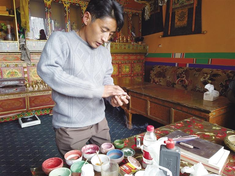 尼瑪次仁因身體殘疾,無法出去工作,也不能從事繁重的農(nóng)活,這一度讓他感到失落和迷茫。然而,命運(yùn)在為他關(guān)上了一扇門的同時(shí),也為他打開了一扇窗。在龍珠崗村委會(huì)的推薦下,他來到了墨竹工卡縣職業(yè)教育中心,開始學(xué)習(xí)唐卡繪畫。這一選擇,成為了他人生的重要轉(zhuǎn)折點(diǎn)。