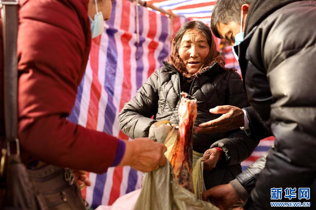 在現(xiàn)場,人來人往,商品琳瑯滿目。扎念琴聲、推車聲、嬉笑聲此起彼伏,一派熱鬧繁忙的景象。