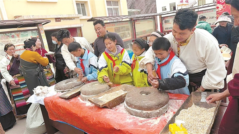 近日,在開(kāi)展村級(jí)、鄉(xiāng)級(jí)“紅色昌都·振興奮進(jìn)”群眾性比賽活動(dòng)中,卡若區(qū)專門組織轄區(qū)各中小學(xué)適齡學(xué)生參與傳統(tǒng)生產(chǎn)技能體驗(yàn)活動(dòng),現(xiàn)場(chǎng)設(shè)置磨糌粑、打酥油茶等極具昌都本地民俗特色的傳統(tǒng)生產(chǎn)技能體驗(yàn)項(xiàng)目,邀請(qǐng)當(dāng)?shù)厥煜鹘y(tǒng)技藝的長(zhǎng)輩、民間能手現(xiàn)場(chǎng)手把手教學(xué)指導(dǎo),一改以往文化宣傳的枯燥形式,真正讓優(yōu)秀傳統(tǒng)文化可感、可學(xué)、可體驗(yàn)。