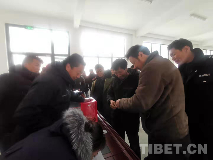 經(jīng)過四天的路途,1月1日,載著從昌都遠道而來的群眾和行李的大巴車及卡車緩緩駛?cè)肷侥鲜屑硬榭h易地扶貧搬遷安置點,這標志著昌都市三巖片區(qū)跨市易地扶貧搬遷群眾順利入住新家,一場跨越千余公里的遠行隨之結(jié)束。當?shù)叵嚓P(guān)部門負責(zé)人為每一名搬遷群眾送上潔白的哈達,祝賀他們順利入住,32戶240名群眾將在這里開啟幸福新生活。