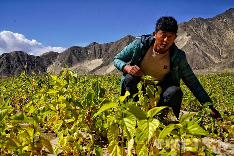 中國(guó)西藏網(wǎng)訊 他正蹲在苗圃基地里,用手輕輕地?fù)芘酌?,觀察幼苗的生長(zhǎng)情況。微弱的陽光透過苗圃基地照射在他的臉上,使他的面龐顯得愈加黝黑,而那一頭卷發(fā)也愈顯得烏黑茂密。高高的個(gè)子在襯衫的映托下,顯得他特別精干。他就是西藏自治區(qū)山南市貢嘎縣吉雄鎮(zhèn)劉瓊村阿新朗苗圃有限公司董事長(zhǎng),劉瓊村致富道路的“筑夢(mèng)人”扎西班旦。