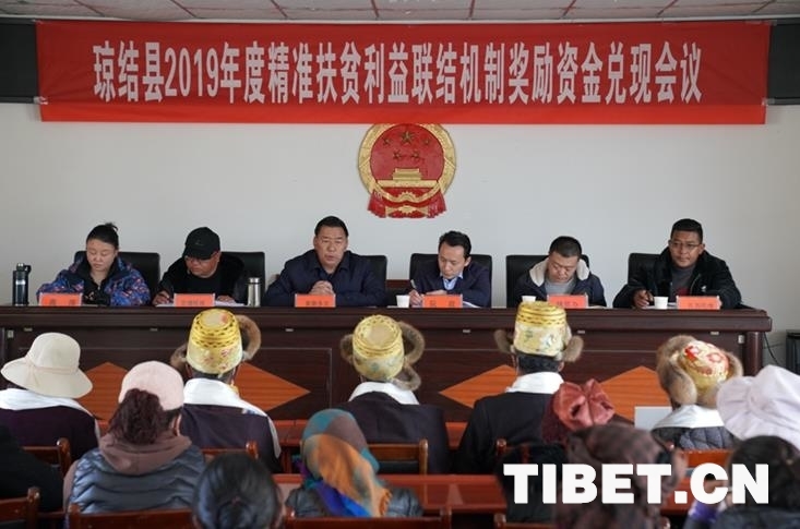 原來瓊結縣2019年度精準扶貧利益聯(lián)結機制獎勵資金兌現(xiàn)會正在瓊結縣瓊結鎮(zhèn)政府三樓會議室舉行。