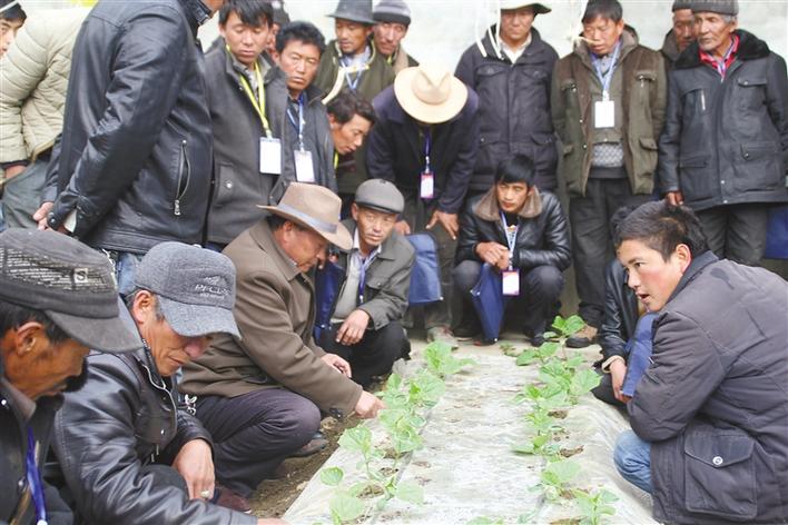 圖為白朗縣龍頭企業(yè)技術(shù)人員對(duì)貧困戶進(jìn)行蔬菜種植技術(shù)培訓(xùn)。記者 次仁片多 索朗瓊珠 攝