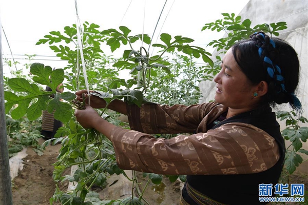 2019年,在政府援藏資金的幫扶下,姐妹倆通過土地置換在彭倉村建成13個(gè)溫室大棚,經(jīng)過引進(jìn)果蔬新品種和技術(shù)積累,實(shí)現(xiàn)大棚種植收入大幅提升。同年8月,格桑旺姆申領(lǐng)了大學(xué)生創(chuàng)業(yè)補(bǔ)貼資助,兩人又在白朗縣城開了一家蔬菜銷售店。姐姐管理大棚、培訓(xùn)雇工,妹妹負(fù)責(zé)果蔬銷售和店鋪運(yùn)營,兩人密切合作,事業(yè)蒸蒸日上。