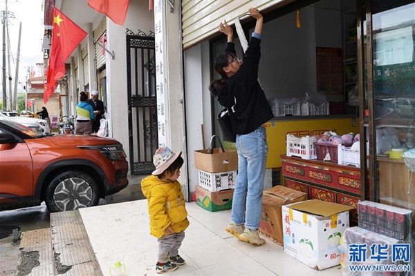 格桑旺姆推開蔬菜店的卷閘門準(zhǔn)備營業(yè)(8月3日攝)。