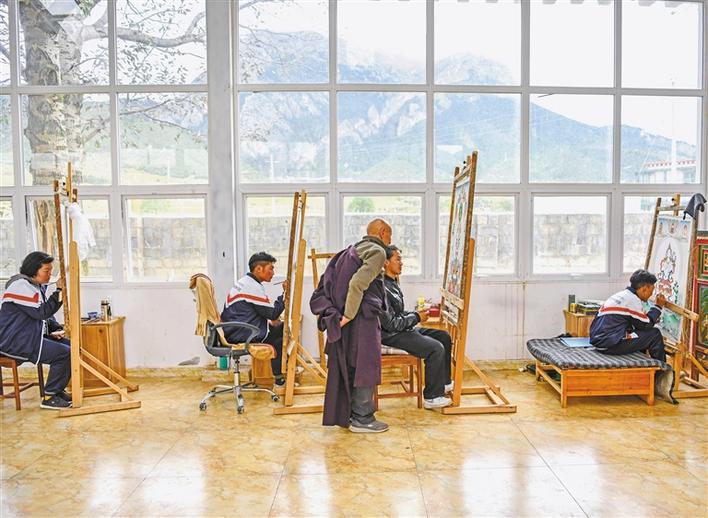 近年來(lái),西藏大力發(fā)展現(xiàn)代職業(yè)教育,為打贏脫貧攻堅(jiān)戰(zhàn)提供了技能保障。作為非物質(zhì)文化遺產(chǎn)傳承人,88歲的嘎瑪?shù)吕赵谖鞑夭际锌ㄈ魠^(qū)嘎瑪鄉(xiāng)成立了民族手工藝培訓(xùn)基地,使民族手工藝從家族作坊式的生產(chǎn)向集中生產(chǎn)轉(zhuǎn)變。精湛的手工藝品逐漸走出了山溝,也帶動(dòng)群眾走上了致富路。目前,嘎瑪?shù)吕展灿袑W(xué)員460名,其中112名曾是建檔立卡貧困戶(hù),去年人均年收入達(dá)到20萬(wàn)元左右。