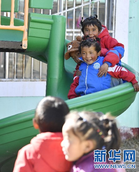 西藏山南市貢嘎縣吉雄鎮(zhèn)紅星社區(qū)雙語幼兒園里的孩子們在玩耍(11月25日攝)。新華社記者 張汝鋒 攝
