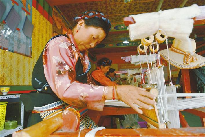 西藏日喀則仁布縣德吉林鎮(zhèn)強欽村德旦康薩農(nóng)牧民合作社是一家從事民族手工編織的專業(yè)合作社,主要生產(chǎn)卡墊、毛毯、藏裝等產(chǎn)品,現(xiàn)有員工150余名。近年來,在當?shù)卣膸椭龀窒?,合作社先后組織農(nóng)牧民進行技能培訓10次,培訓人數(shù)超過210人,通過培訓提升了合作社員工的技術(shù)能力,幫助當?shù)剞r(nóng)牧民群眾實現(xiàn)了就近就便就業(yè)的愿望。