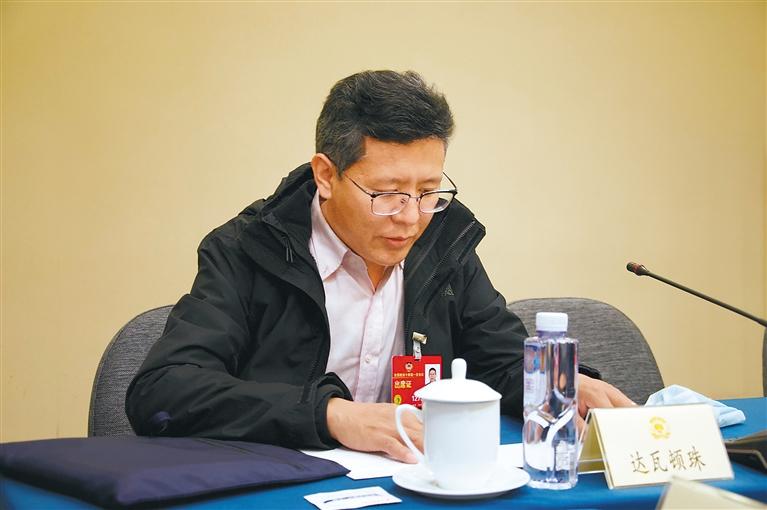 圖為達瓦頓珠參加農(nóng)業(yè)界小組討論。 記者 旦增蘭澤 攝
