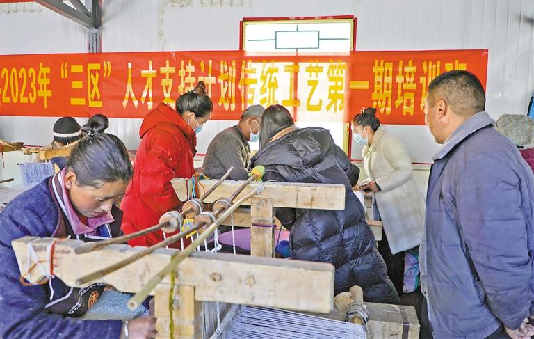 近日,山南市洛扎縣組織25名學(xué)員,采用理論與實(shí)操相結(jié)合的方式,舉辦了2023年“三區(qū)”人才支持計(jì)劃傳統(tǒng)工藝第一期培訓(xùn),現(xiàn)場(chǎng)教授學(xué)員學(xué)習(xí)卡墊織造技藝。