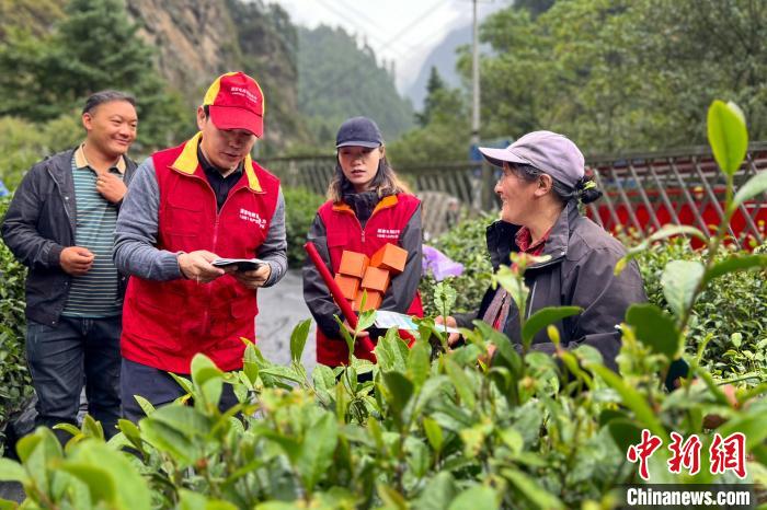 10月7日,國網(wǎng)山南供電公司共產(chǎn)黨員服務隊將安全用電手冊送到茶農(nóng)手中,積極向茶農(nóng)宣傳用電政策和用電安全知識。(多吉次仁 攝)
