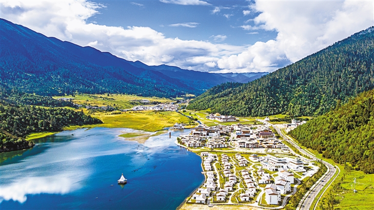 圖為廣東省對口支援建設的林芝市巴宜區(qū)魯朗國際旅游小鎮(zhèn)。(圖片由林芝市魯朗景區(qū)管理委員會提供)