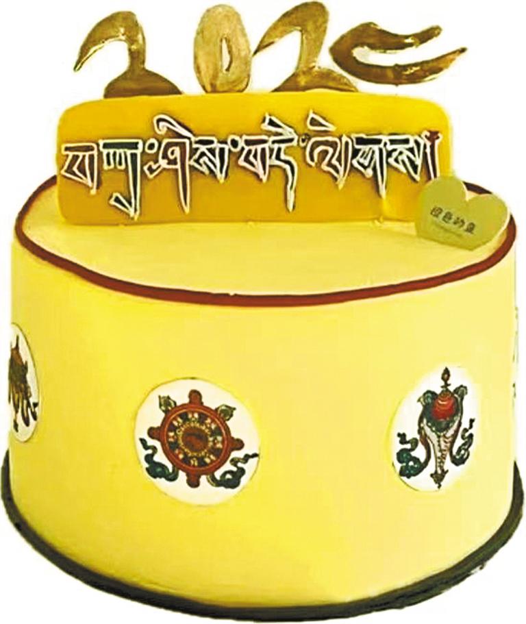 與搪瓷盆蛋糕的復(fù)古風(fēng)情不同,藏式蛋糕更多地融入了藏式傳統(tǒng)元素和制作工藝。藏式蛋糕往往使用青稞、酥油、牦牛奶、牦牛酸奶、糌粑等傳統(tǒng)的藏式原料和手法進(jìn)行制作,口感濃郁而特別,形態(tài)多參考藏式傳統(tǒng)圖案。相較于常見的西式蛋糕,藏式蛋糕更能夠凸顯出西藏特有的飲食文化和生活習(xí)俗。