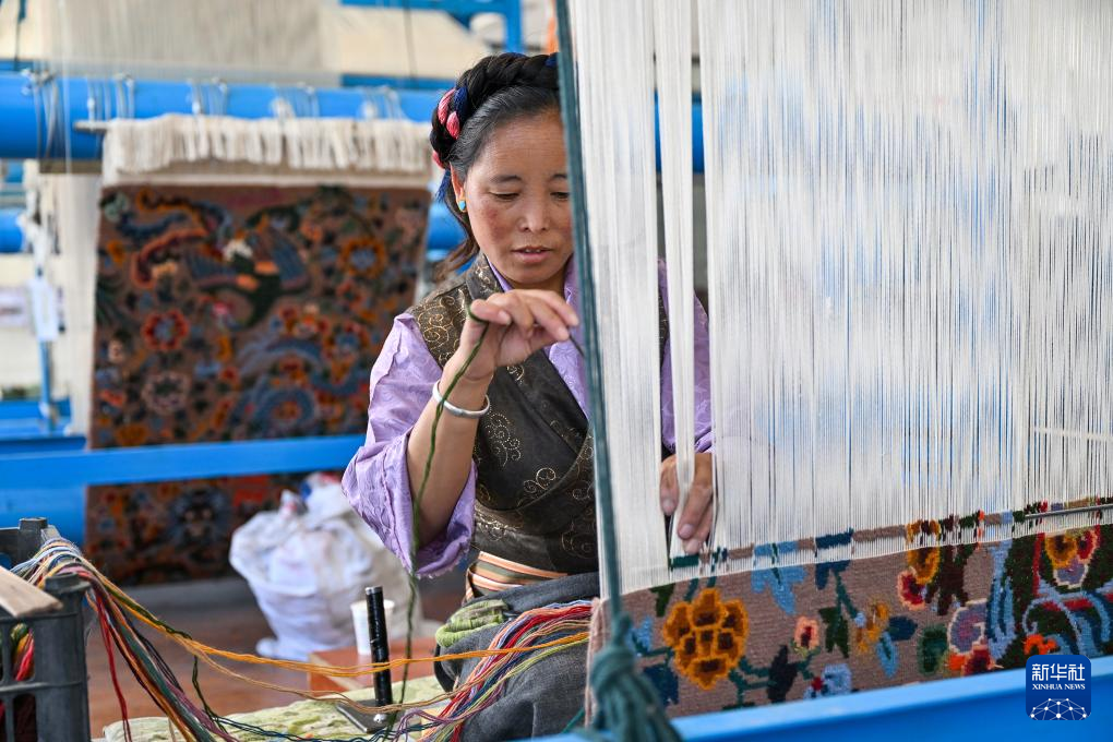 近年來,江孜藏毯不僅嚴(yán)守織造技藝中代代相傳的“魂”——穿桿式連環(huán)八字扣,又在數(shù)字制圖、生產(chǎn)工藝提升方面創(chuàng)新,使圖案產(chǎn)生光影流動的3D效果。當(dāng)?shù)氐牟靥汗就ㄟ^建立合作社、開辦技能培訓(xùn)班等方式擴(kuò)大靈活就業(yè)規(guī)模,讓更多人在家門口織藏毯增收,助推鄉(xiāng)村振興。