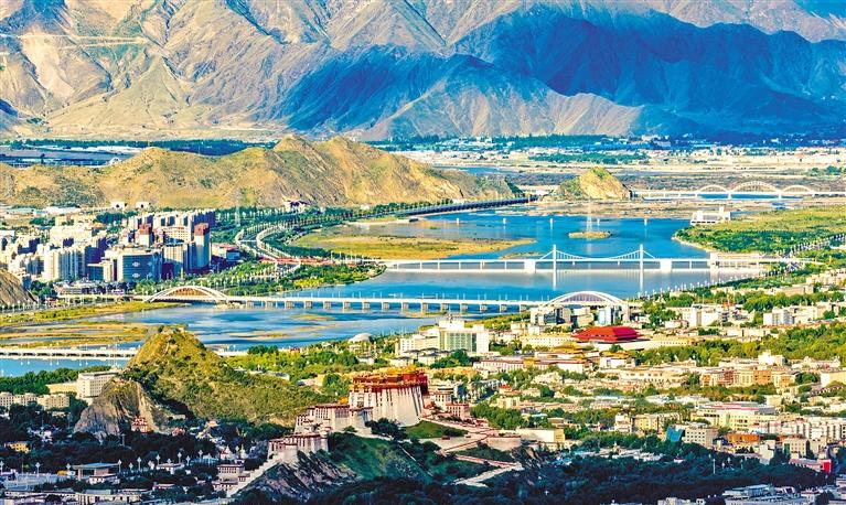 1965年8月25日,橫跨拉薩河的第一座大橋——拉薩大橋正式落成通車,結(jié)束了當(dāng)?shù)厝罕娍颗Fしざ珊拥臍v史。如今僅在拉薩市區(qū),就有柳東大橋、青藏鐵路拉薩河特大橋、和美橋、柳梧大橋、連心橋、迎親橋、拉薩大橋、藏?zé)岽髽?、納金大橋等眾多大橋跨越拉薩河。拉薩河上的橋梁方便了人們的生活,扮靚了城市的風(fēng)景,也是西藏經(jīng)濟(jì)社會(huì)發(fā)展、交通基礎(chǔ)設(shè)施建設(shè)日新月異的見證。