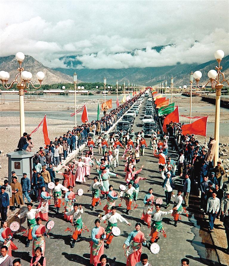 圖為拉薩大橋落成通車典禮(1965年8月25日攝)。新華社發(fā)