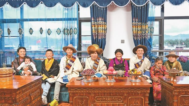 定日縣長所鄉(xiāng)森嘎村群眾搬遷新家后合影。