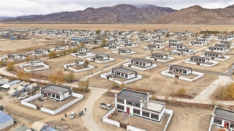 俯瞰拉孜縣拉孜鎮(zhèn)措布村災(zāi)后恢復(fù)重建新居。記者 旦增嘎瓦 攝