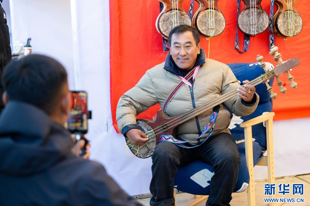 12月1日,一名群眾通過直播間介紹扎念琴。新華網(wǎng) 旦增努布 攝