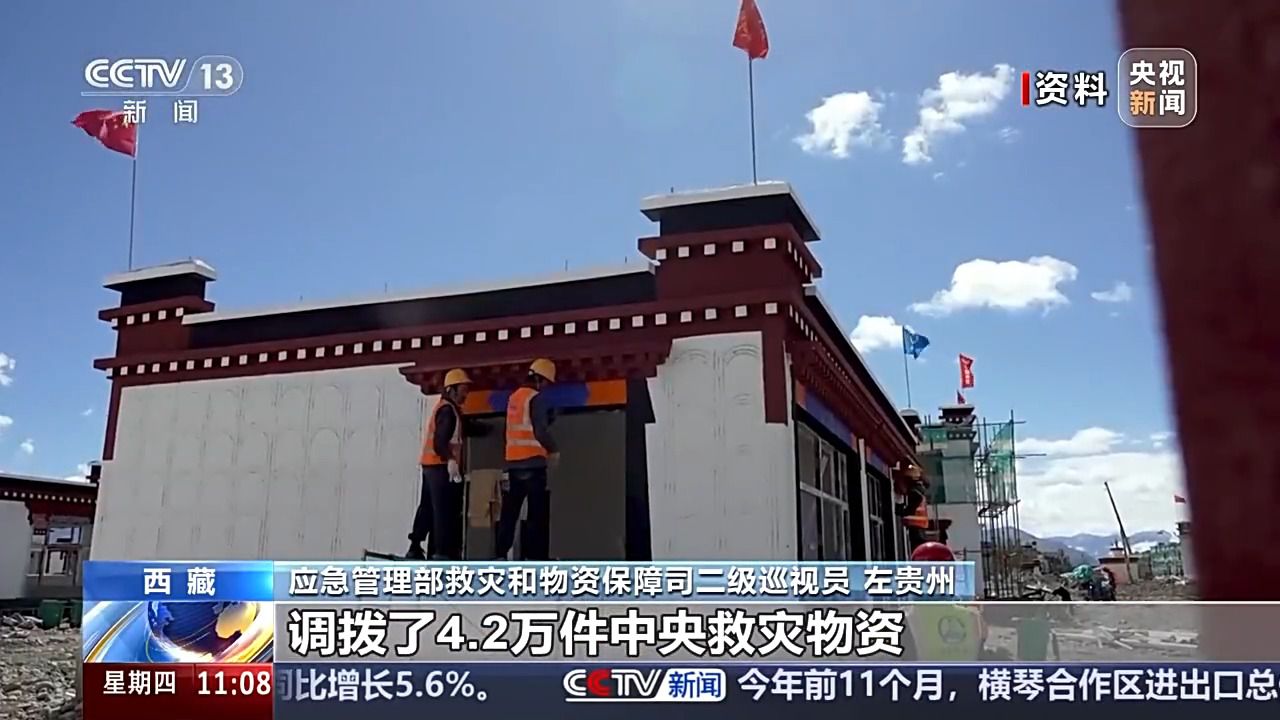 應(yīng)急管理部救災(zāi)和物資保障司二級巡視員 左貴州:針對定日地震,國家防減救災(zāi)委協(xié)調(diào)下?lián)芰?4億中央救災(zāi)資金,調(diào)撥了4.2萬件中央救災(zāi)物資,并啟動了應(yīng)急物資保障政社協(xié)同機(jī)制,調(diào)撥一大批生活類的物資,確保受災(zāi)群眾盡快恢復(fù)家園、溫暖過冬。