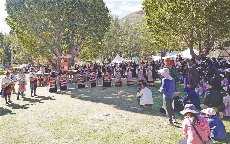 強(qiáng)吉村的林卡里,游客坐滿了。