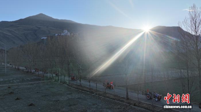 圖為西藏山南市乃東區(qū)門中崗社區(qū)村民正前往春耕儀式現(xiàn)場。(無人機照片)中新社記者 貢嘎來松 攝