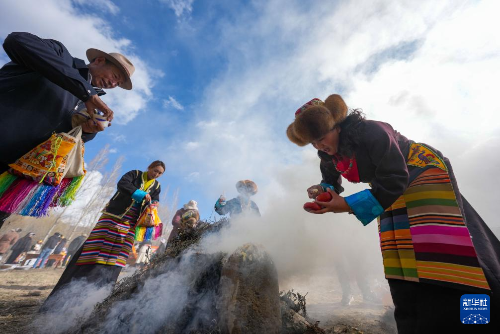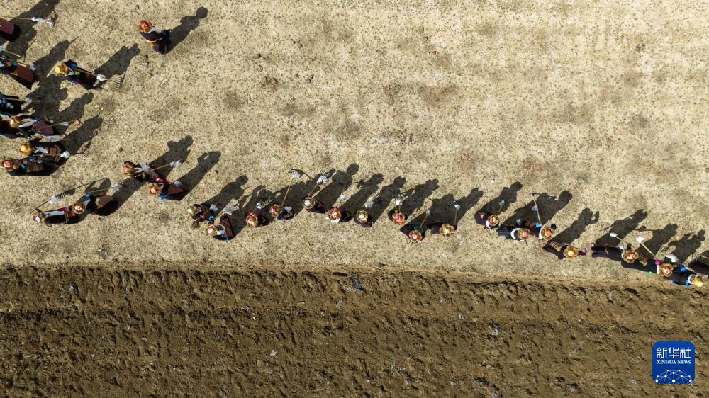 3月16日,西藏山南市結巴鄉(xiāng)結巴村村民舉行春耕儀式。新華社記者 晉美多吉 攝