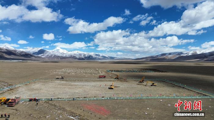 4月6日,全球海拔最高的槽式光熱電站——中廣核西藏烏瑪塘50兆瓦光熱項目在拉薩市當雄縣烏瑪塘鄉(xiāng)正式開工建設,圖為項目開工現(xiàn)場。(中國廣核集團供圖)