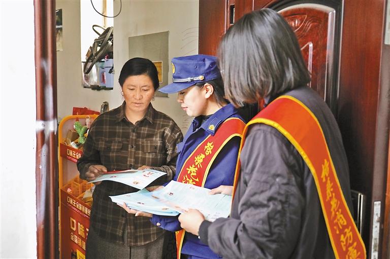 圖為阿里地區(qū)“格?;ㄏ佬麄麝牎边M村入戶向群眾科普電動自行車消防安全知識。