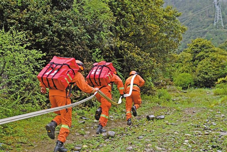 “山坡處有一火點,第一組迅速架設水泵,采取并串聯(lián)結(jié)合方式進行處置”。隨著指揮員一聲令下,林芝市森林消防支隊巴宜中隊的森林消防員迅即按照各自分工就近取水、啟動水泵、鋪設管帶……這是林芝市森林消防支隊巴宜中隊以駐訓為契機開展山地水泵架設與撤收實戰(zhàn)訓練的場景。